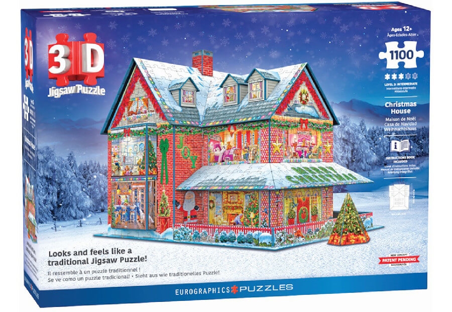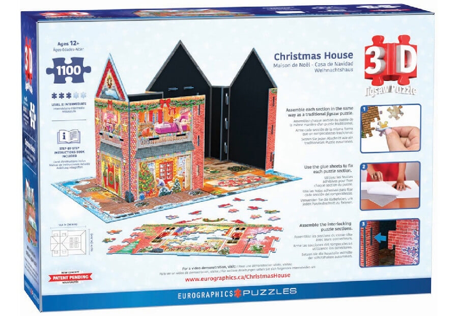 Kom i ægte julestemning med det nye 3D Christmas House-puslespil! Det patenterede 3D Puzzle System kombinerer den klassiske følelse af et traditionelt puslespil med spændingen ved at bygge en tredimensionel julekreation.