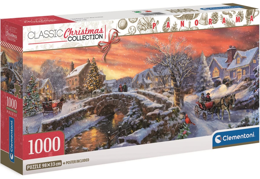 Julepuslespil fra Clementoni med 1000 brikker i panoramaformat