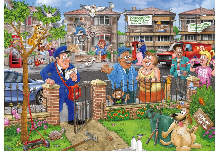 Et sjovt og detaljeret puslespil fyldt med hverdagsscener, humor og et twist af fremtidens muligheder.