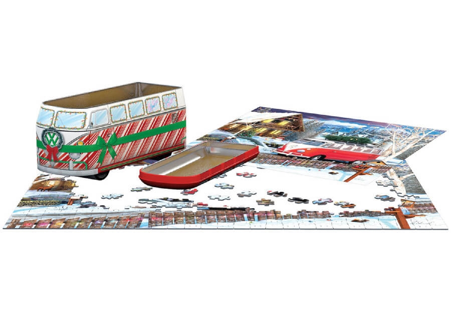 Fejr julen med dette charmerende VW Christmas Bus Tin puslespil!